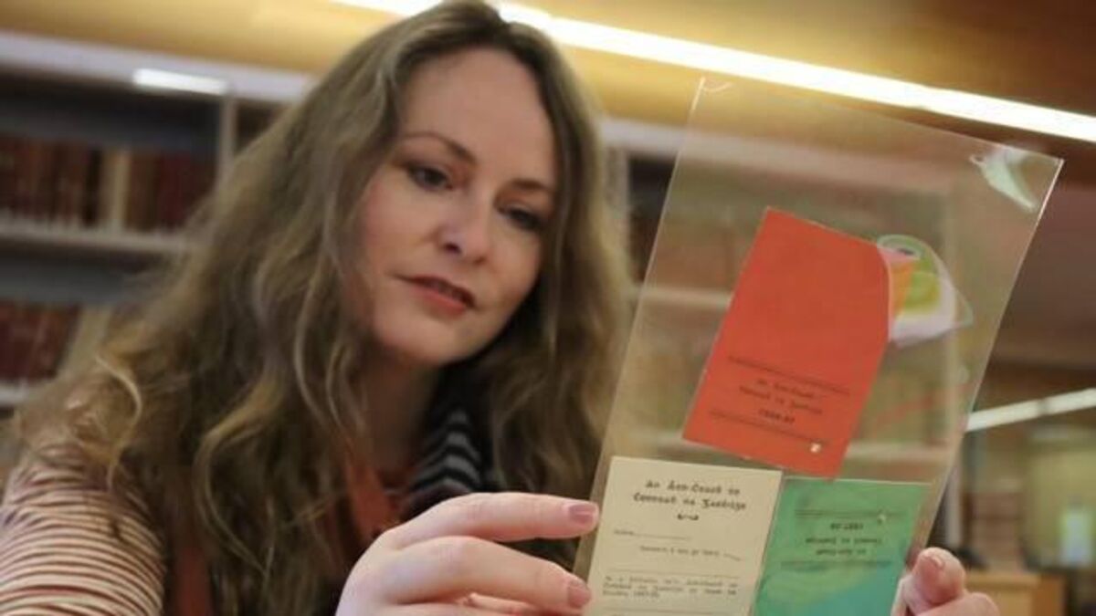 Niamh Ní Charra, an archivist based at the University of Galway, examining some archive material. Picture: University of Galway
