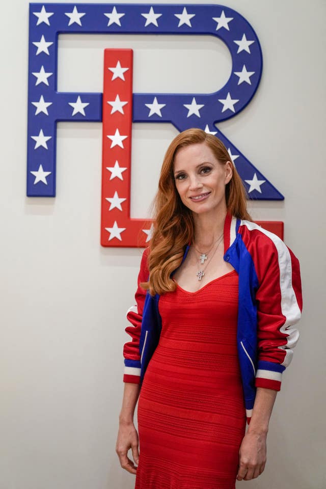 Chastain appeared to be with her daughter, whom she shares with her husband, Gian Luca Passi de Preposulo, an Italian count, and wore a white top with a USA flag.