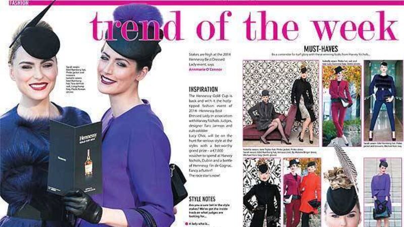 The Hennessy Gold Cup is back and with it the hotlytipped fashion event of 2014 - Hennessy Best Dressed Lady in association with Harvey Nichols. Judges, designer Tara Jarmon and cult cobbler Lucy Choi, will be on the hunt for serious style at the styles with a bet-worthy grand prize – a €7,000 voucher to spend at Harvey Nichols, Dublin and a bottle of Hennessy Fin de Cognac. Fancy a flutter?