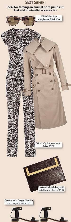 Ideal for taming an animal print jumpsuit. Just add minimalist accessories.
