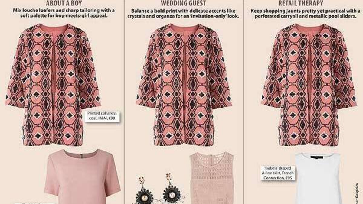 Mix louche loafers and sharp tailoring with a soft palette for boy-meets-girl appeal.