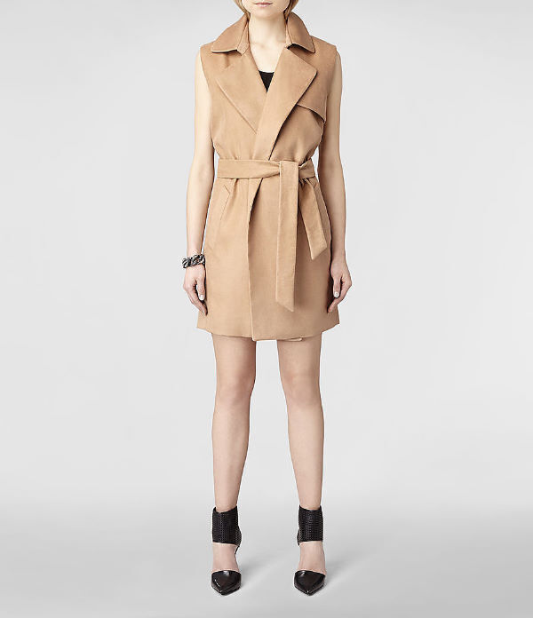 A trench coat is rarely a fashion “don’t” but is not cutting-edge its classic form. Keep up-to-date by choosing a sleeveless version in an unexpected fabric. This suede-textured, Italian cotton coat from AllSaints is the perfect way to get the look at a high-street price.