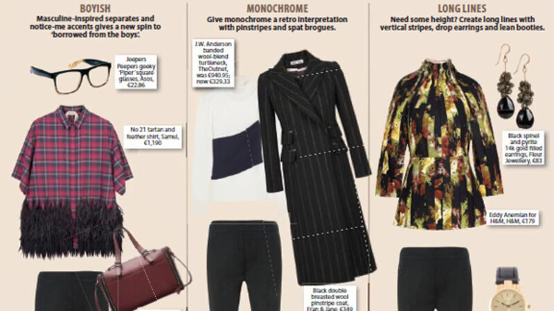 Masculine-inspired separates and notice-me accents gives a new spin to ‘borrowed from the boys’.