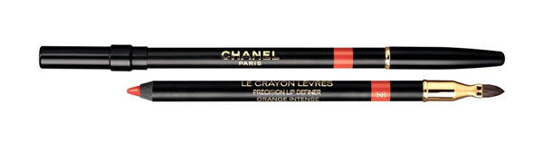 Jake lined her lips with Chanel Le Crayon Levres Precision Lip Definer in Orange Intense, €22, and applied a coat of YSL Rouge Pur Couture Glossy Stain in no.8 Orange de Chine, €33.