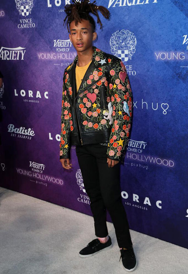 Jaden Smith’s fashion choices are always adventurous. The actor/rapper chose a brightly-printed Gucci leather jacket from the brand’s autumn collection for Variety’s ‘Power of Young Hollywood’ Party.