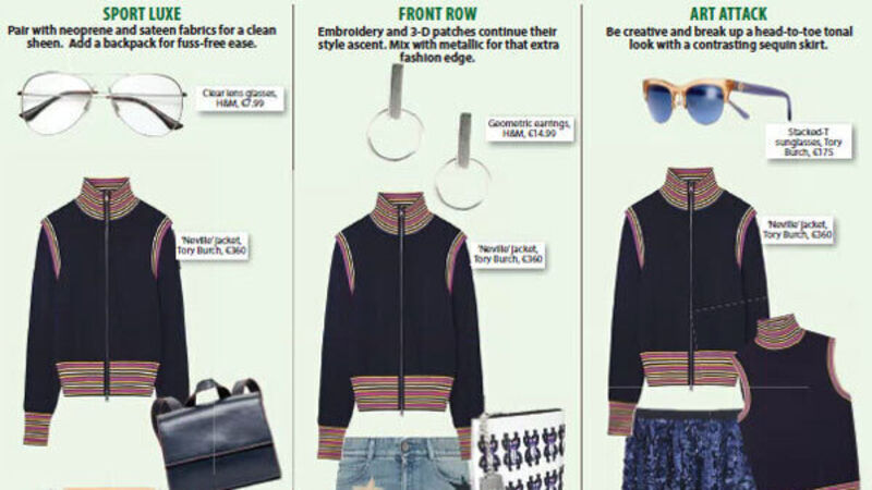 Pair with neoprene and sateen fabrics for a clean sheen. Add a backpack for fuss-free ease.