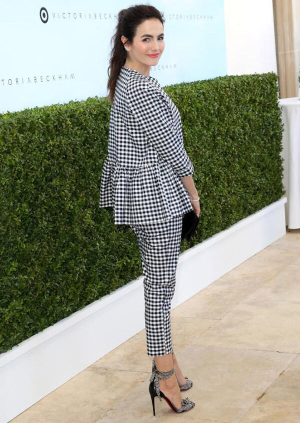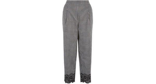 Gingham-on-gingham? Somehow it works — and well at that. Might it be the subtle balance between a roomy peplum top and clean 7/8th trousers?