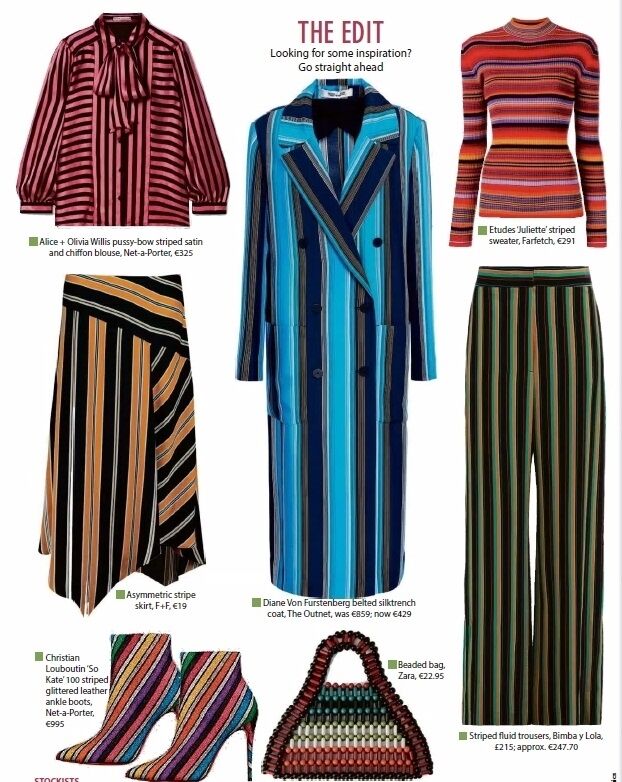 Put manners on bold striped colourways with neutral anchors like black and navy which also segue seamlessly between the seasons.
