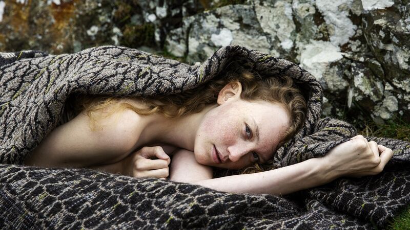From the N.E.S.T. collection of handwoven cloth by Fiona Daly, 'Basalt Design' handwoven with from Gotland, Hebridean, Faroe & Villsau wool and natural dyes (400x100cm). See fionadalytextiles.com