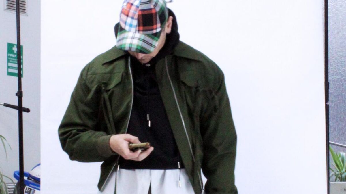 Menswear: Cow print denim jacket, sheer polo necks, and palazzo trousers