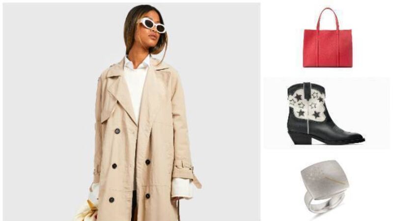 A trusty trench coat will make the seasonal shift an easy transition, as seen at Boohoo.