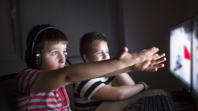 Two boys playing online games