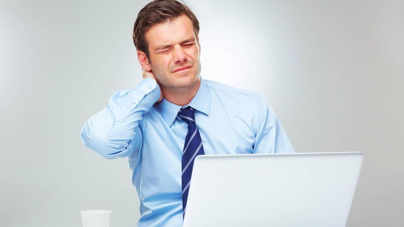 ‘Stop slouching and sit upright with feet flat on the floor and screens at eye level.’