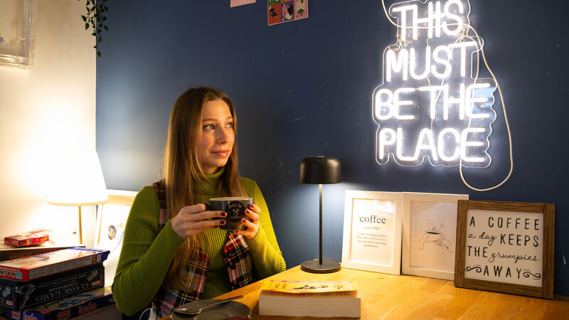 Adele Miner enjoys a cup of coffee and a read at Brew Coffee in Raheny, Dublin. Picture: Gareth Chaney