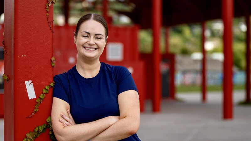 Breda Graham, Irish Examiner lifestyle writer, pictured in the Marina Park as she prepares to give Derval O’Rourke’s exercise routines a try. Picture: Chani Anderson.