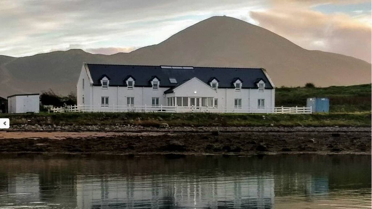 The transcendental meditation centre on the Island of World Peace, Inishraher, Clew Bay, with Croagh Patrick in the background. The group’s choice of this island as a base is indicative of how islands can sustain different types of lifestyles in different eras. Picture: TM centre
