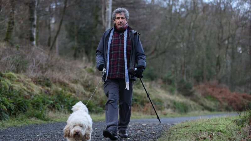Charlie Bird his dog Tiger training for his upcoming charity climb. Picture: Maxwells Dublin