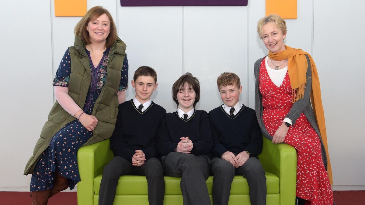 Pupils of Douglas Community School, Cork who are taking part in the Activating Social Empathy programme (supported by Cillian Murphy) . Included are teachers, Claire Moylan and Niamh Craig with first year students Ethan O'Leary, Odhrán Brennan and Seoirse Norris. Picture Dan Linehan