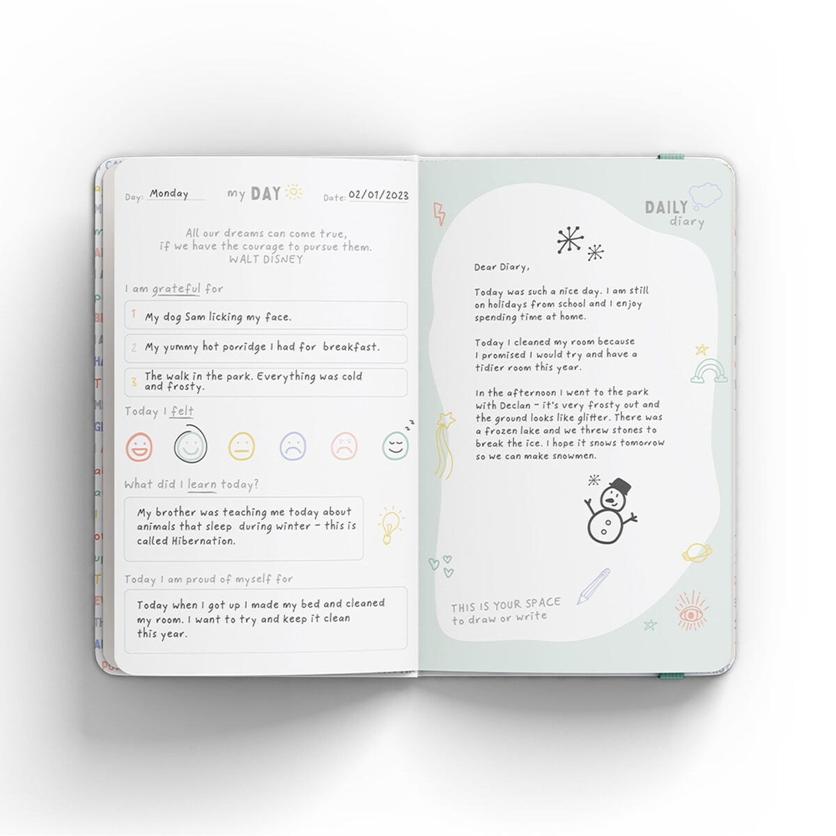 The Head Plan is a Dublin-based business that designs journals and planners. This particular journal features daily pages of uplifting quotes, gratitude prompts, an emoji check-in, a section for children to reflect on what they learned during the day, and space to write or draw.