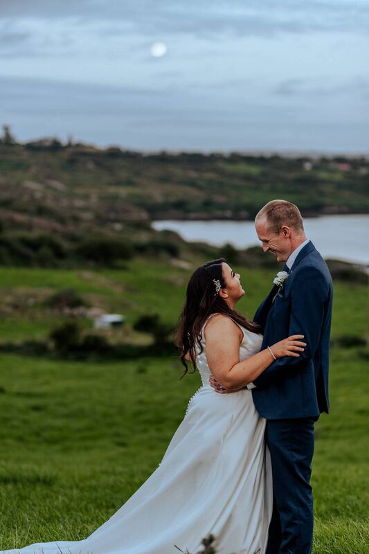 As they gazed out over Roaring Water Bay, bride and groom, Aileen O’Sullivan and Daniel Hickey, didn’t mind one bit that their original wedding plan hadn’t worked out due to pandemic restrictions.