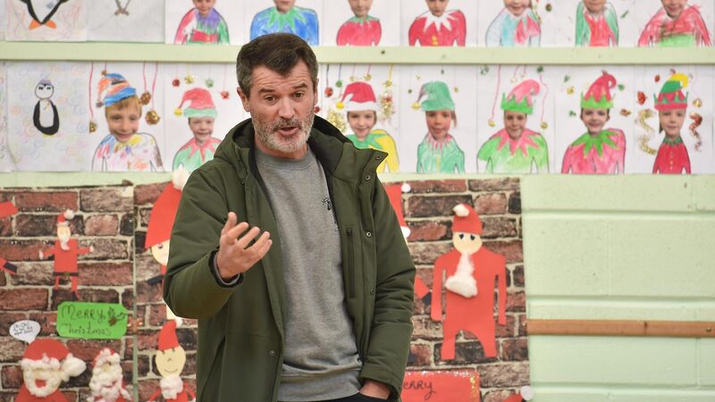 Roy Keane speaking with pupils of Dunderrow National School, Cork on their Christmas jumper day when he dropped into the school after fifth class pupil Noah Mehigan wrote a letter to his hero.