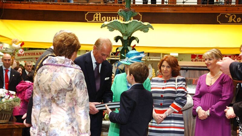 Prince Philip and Queen with the books presented to them during their visit to English Market in 2011. Pic: Larry Cummins