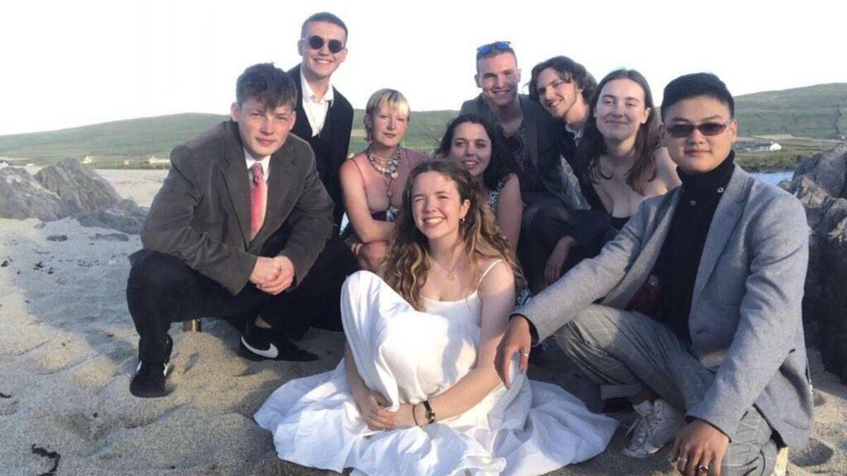 They each have more than a dozen years' education clocked up as they finished secondary school, but due to Covid restrictions there can't be debs balls and formal graduation parties. So they decided to have their own 'grads ball' in the wild Atlantic air.