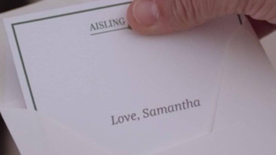 Then, I thought to myself — they've read The Aislings! SATC is a fan of Emer McLysaght and Sarah Breen! And of course they are — I mean, aren't we all? But surely if they were going to reference a cultural powerhouse like Aisling, they would do so by putting a copy of one of the books casually on a coffee table.