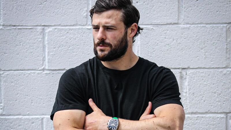 Robbie Henshaw with his rugby inspired 'Magon Watch' created by Stephen McGonigle