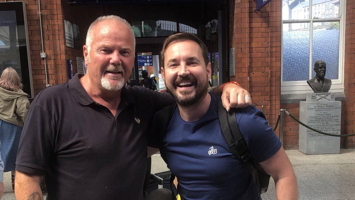 Line of Duty star Martin Compston with fan Pat Healy in Kent Station