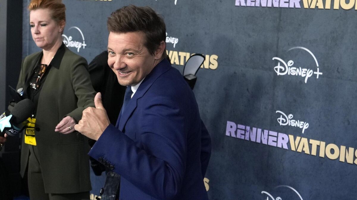 The US actor, 52, appeared in-person at the premiere of his new Disney+ show Rennervations in Los Angeles on Tuesday, and was cheered by fans as he arrived.
