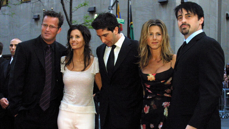 Matthew Perry, from left, Courteney Cox, David Schwimmer, Jennifer Aniston and Matt LeBlanc (Tina Fineberg/AP/PA)