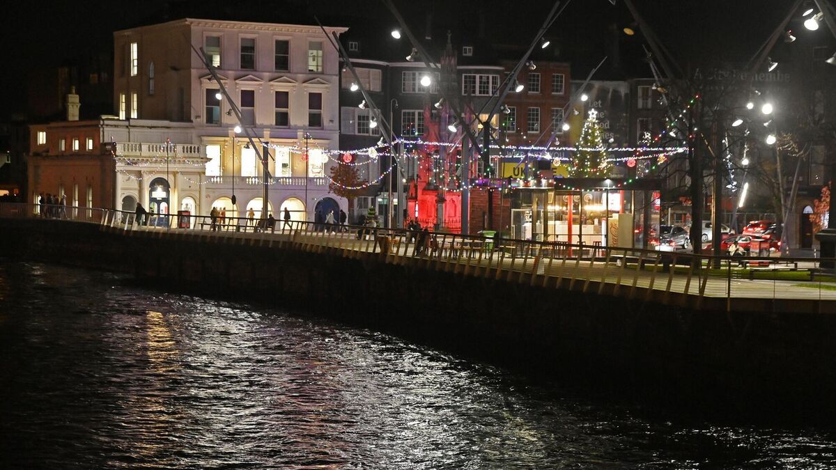 Looking towards the Christmas lights at the junction of South Mall and Grand Parade in Cork - one of the scenes of Billy O'Callaghan's 2023 Christmas story. Picture: Denis Minihane.