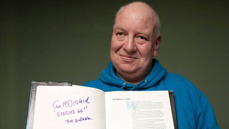 André Hendrick from Oulart, County Wexford pictured with autographs of the Emperor and his Apprentice from the 'Revenge of the Sith' in his Star Wars Encyclopedia. Picture: Jim Campbell