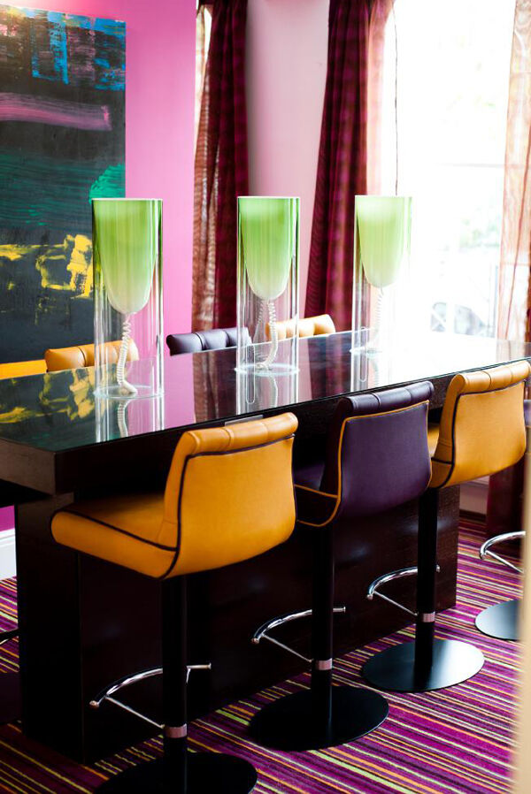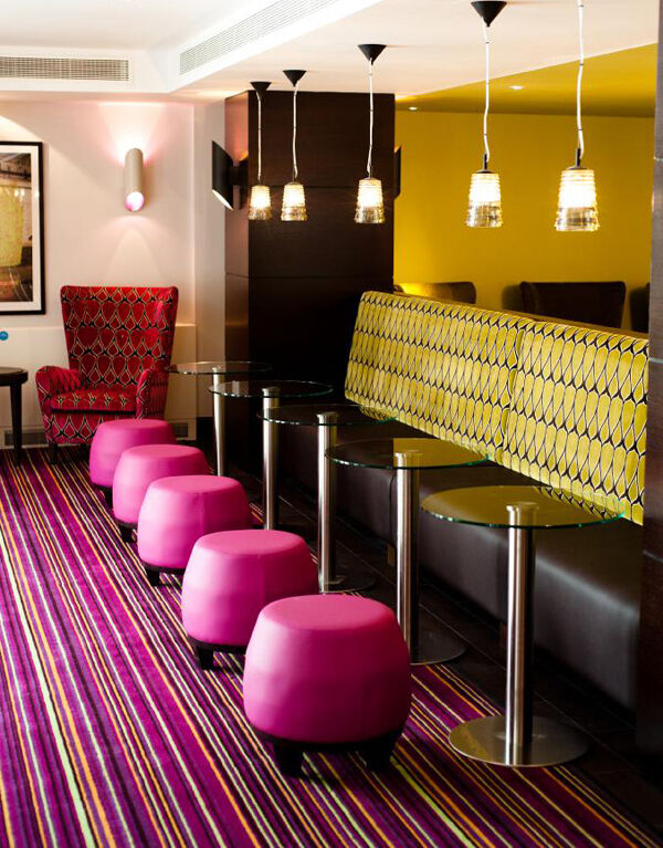 Instead it reminds me of an Ikea showroom crossed with a designer primary school, all bright warm colours - pinks and greens feature a lot - with comfortable pink armchairs, and a general air of clean, modern spaciousness and light. The absolute opposite of dark and dingy.