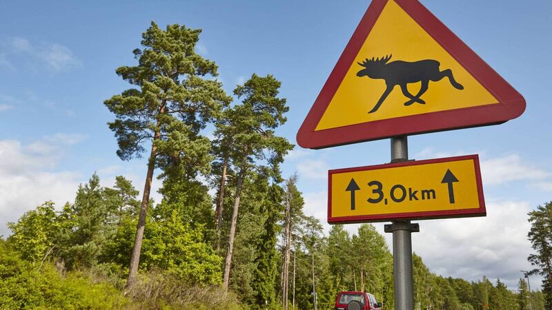 Elk/moose traffic road signal on a Finnish landscape.