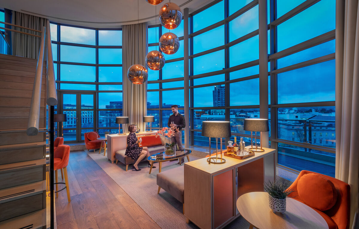 With skyline views over Cork’s newest and oldest landmarks, the River Lee and the docklands, the roof-top Penthouse Suite in Clayton Hotel Cork City is perhaps the most impressive pad in the city. The luxury room is split over two levels with a huge panoramic sitting room leading onto a wrap-around balcony overlooking the city. For entertaining, the suite boasts a dining room that seats six, a full-sized kitchen, three bathrooms, and a mezzanine-style master bedroom featuring a luxury ‘sink into’ king-sized bed. You can join Kanye West, Sarah Ferguson, and Graham Norton on the hotel’s guest book from €650 per night; that includes breakfast for two and a bottle of bubbly on arrival.
