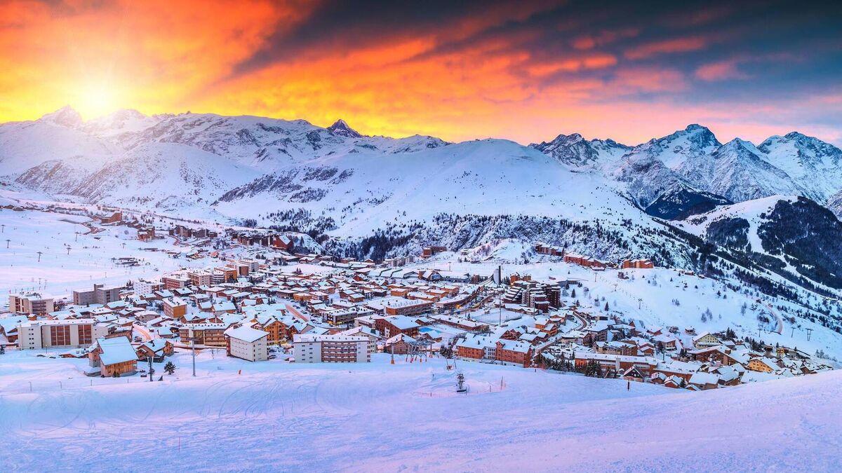 Winter sunrise over the French ski resort of Alpe d'Huez