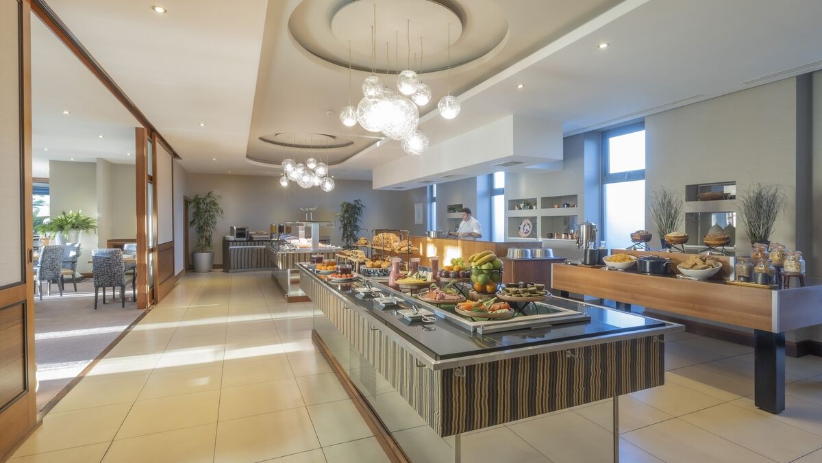 Unusually, I found a lack of gluten-free options for starters, so I went for the catch of the day which was “wild Atlantic salmon” (does that mean the salmon is wild ... or the Atlantic?) which was served with Mediterranean vegetables and a tasty tomato sauce. Breakfast is served in another fine space, the Atlantic Restaurant. Despite being presented in a slightly clinical manner, there’s a decent spread which features many elements not seen in more premium offerings (such as cheese and cold cuts). An omelette station is a nice addition and offers made-to-order dishes served to your table.