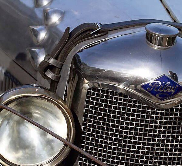 I’m driving a 1930 Riley Nine Brooklands. One of the main characteristics of the Riley is the low centre of gravity thanks to the underslung chassis, with the chassis bars running under the back axle.