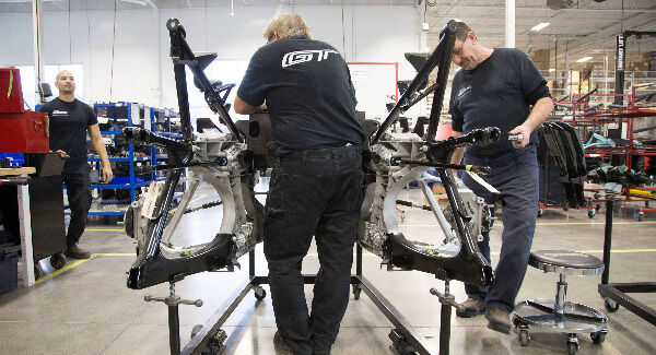 One team will assemble the engine and fit it in the frame, while the other works on the car’s suspension.