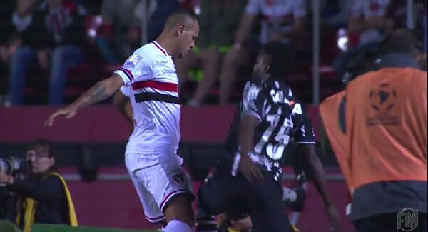 Sao Paulo footballer Luis Fabiano was rightly sent off for this ridiculous bit of theatre during a Copa Libertadores match last night.
