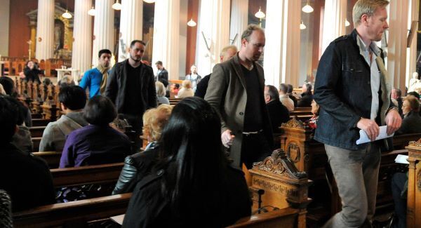 Fr Declan Hurley, a priest in Navan, Co Meath, yesterday intervened to stop a brawl between members of the Travelling community that erupted outside the church after 1pm Mass.