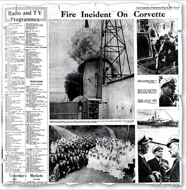 She was deploying hedgehog mortars and depth charges in an exercise witnessed by a number of Naval Service officers, civilians, and members of the press.