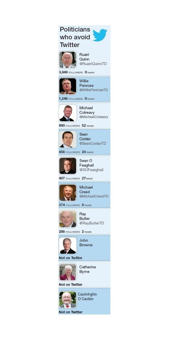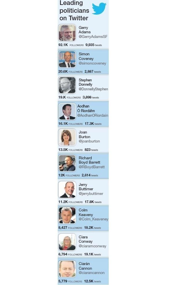 Mr Donnelly has 19,200 followers on Twitter, while party colleague Catherine Murphy has 11,400 followers; Róisín Shortall is behind with 5,420.
