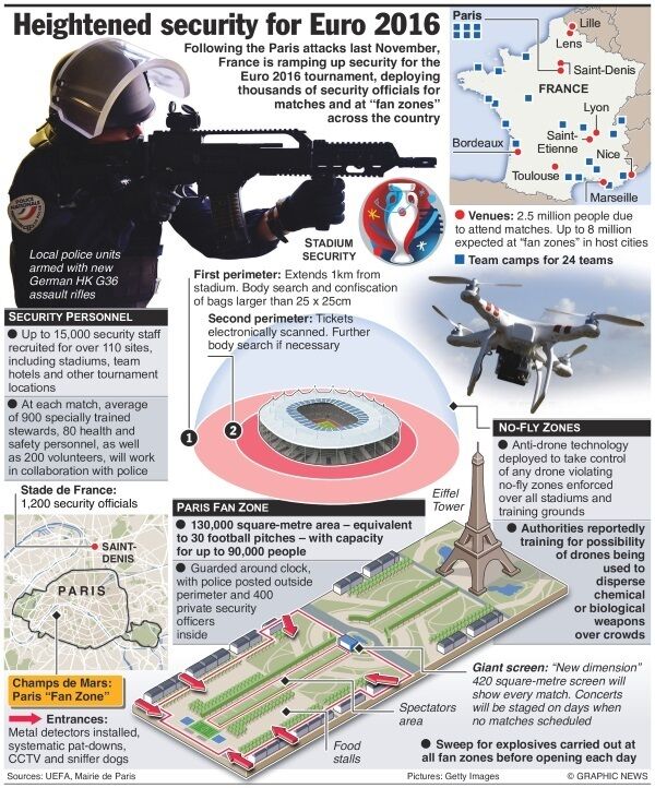 Recent remarks by Patrick Calvar, head of France’s DGSI internal intelligence agency, that Daesh (Islamic State) is planning new attacks have again raised the question of security measures at this summer’s tournament.