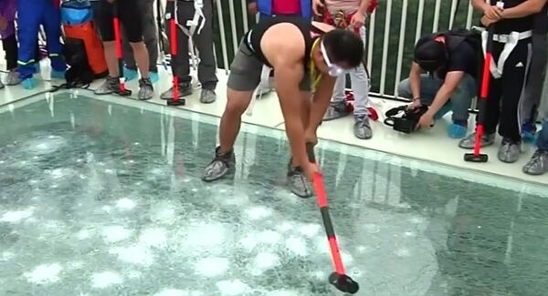 A glass bridge in China was put to the test with volunteers and staff offered the chance to prove its safety.