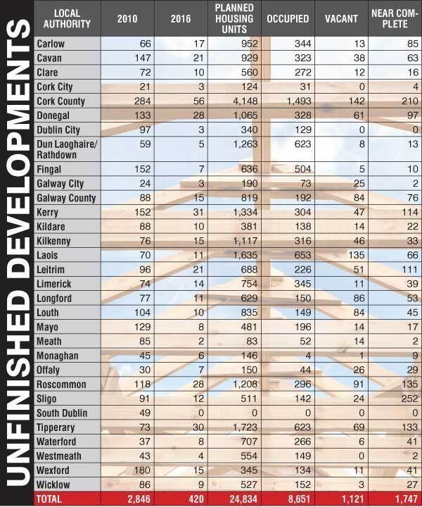 It was also the first year that one local authority — South Dublin County Council — could claim the problem no longer existed as it reported that all outstanding developments had been completed.