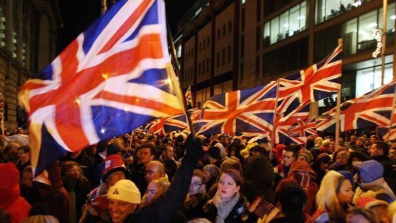 Hundreds of loyalists took to the street and eyewitnesses reported seeing Irish tricolours being brunt to show their opposition to a motion to have the Union flag removed for the first time in over a century.