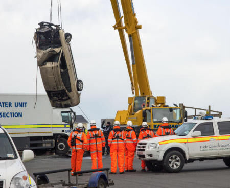 It comes after the car which plunged into the water was recovered by a crane.